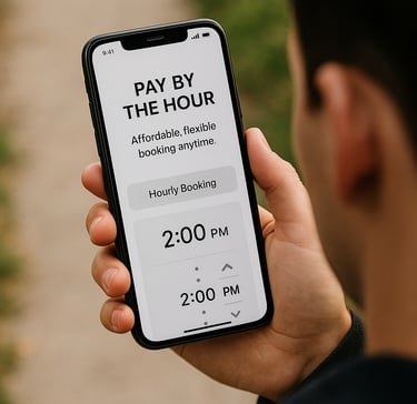 Pay by the Hour: Affordable, flexible booking anytime.