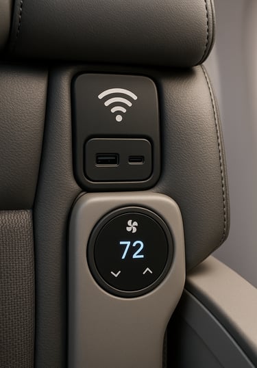 Smart Comfort: Wi-Fi, charging ports, and climate control built-in.